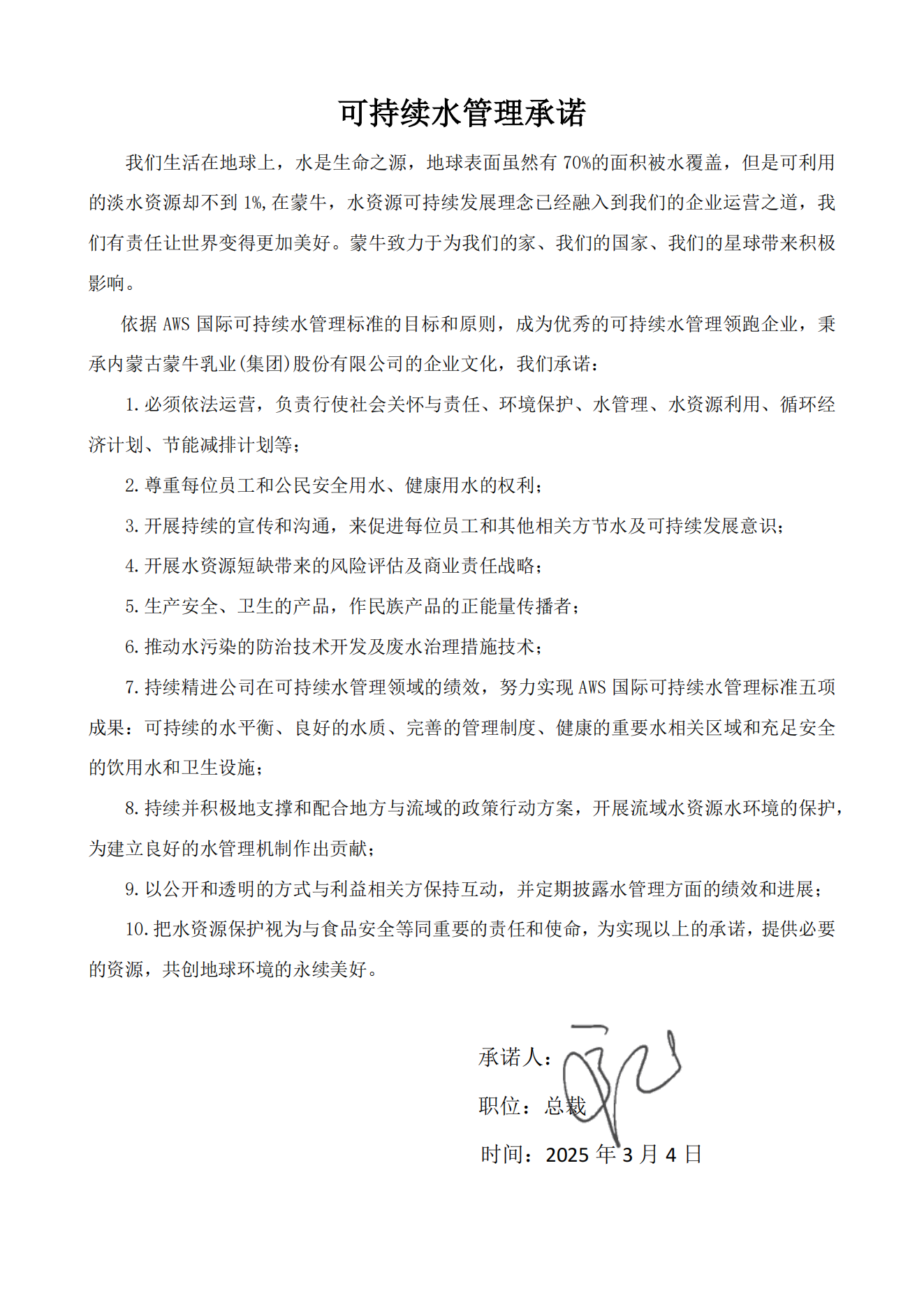 五、 可持續(xù)水管理承諾